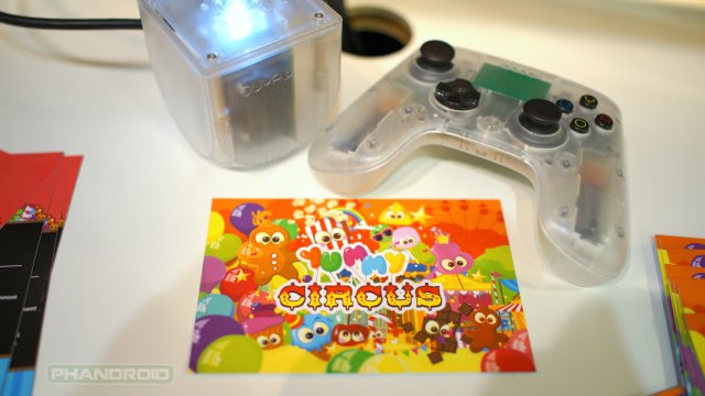 One thing Nilsen enjoyed was the flexibility and hackability of the OUYA. We were playing Yummy Circus with PS3 controllers and he had also made the game compatible with XBOX controllers and the MOGA controller among others. They even got a USB steering wheel working for racing games!